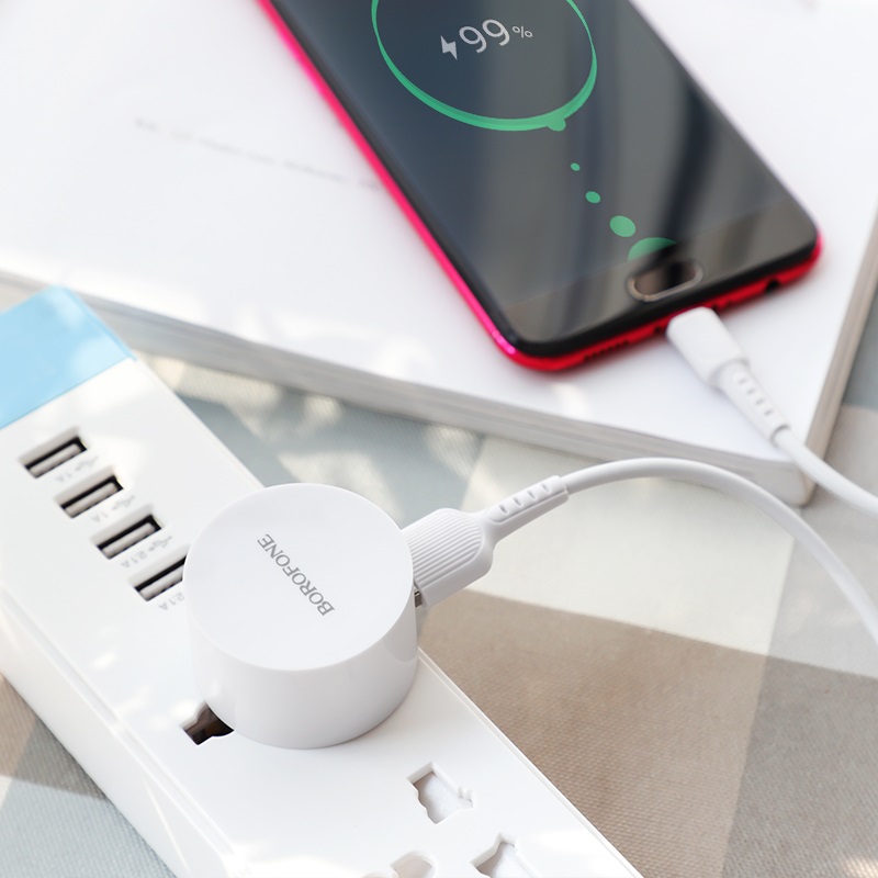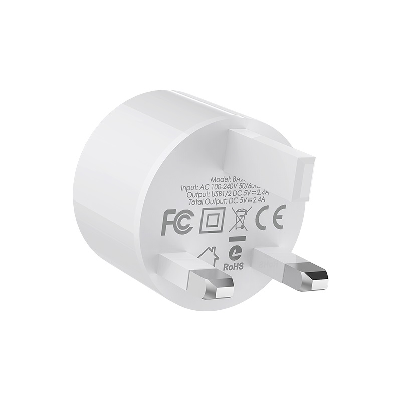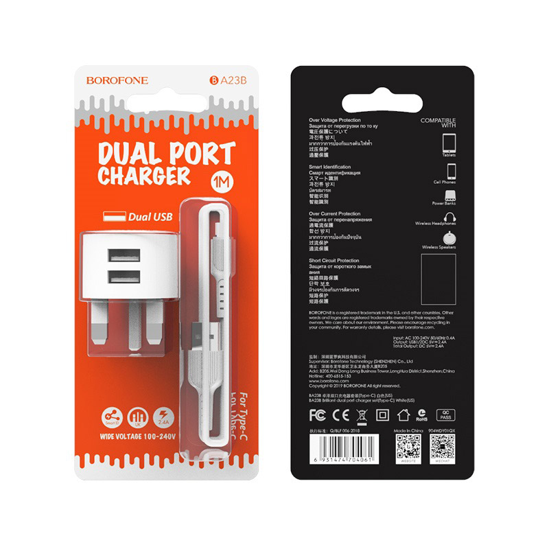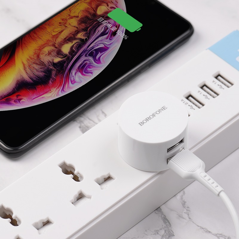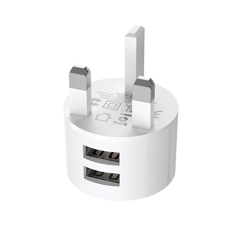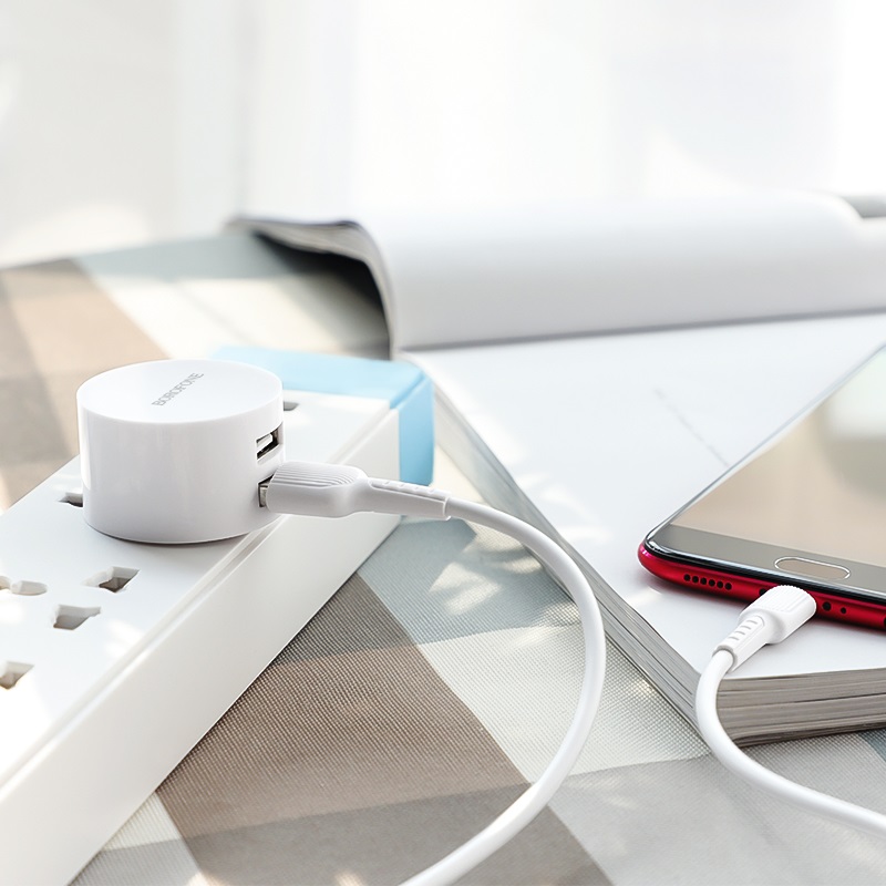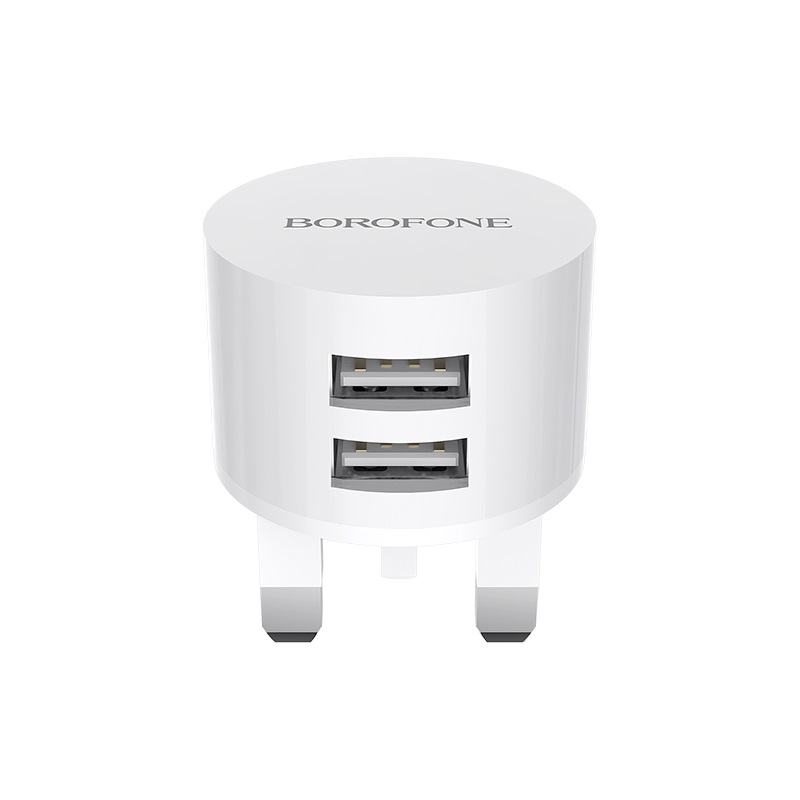 BOROFONE BA23B Brilliant dual USB port wall charger, set with Lightning / Micro-USB / USB-C cable, UK plug, output current 2.4A