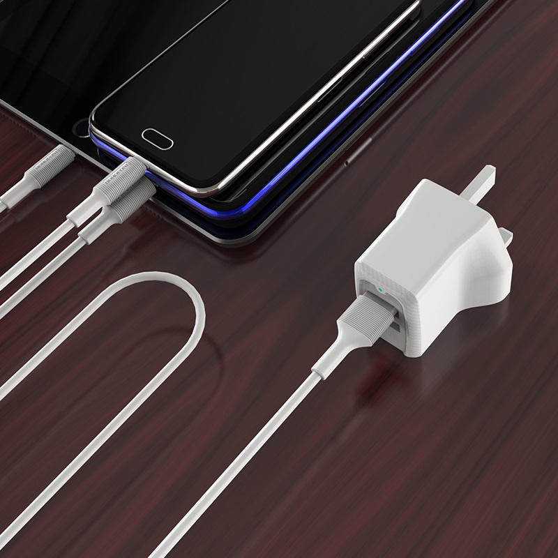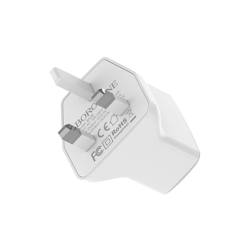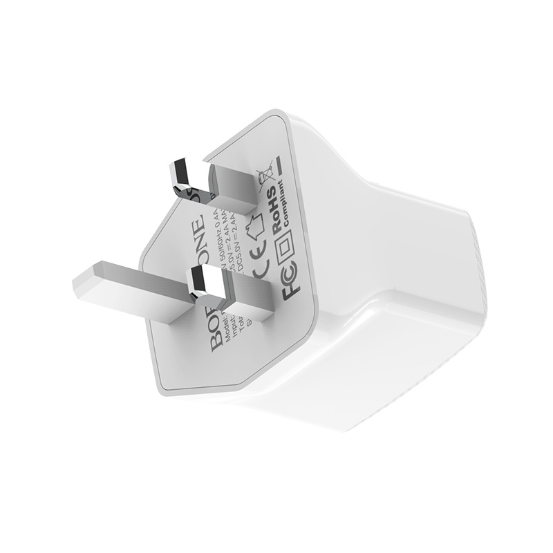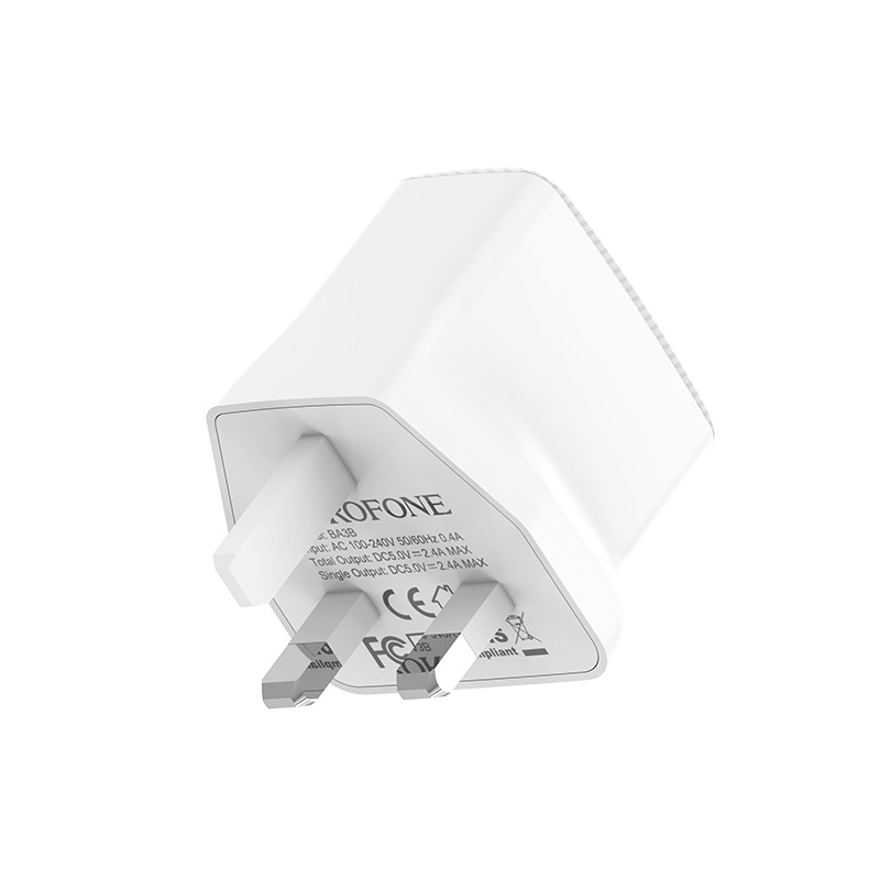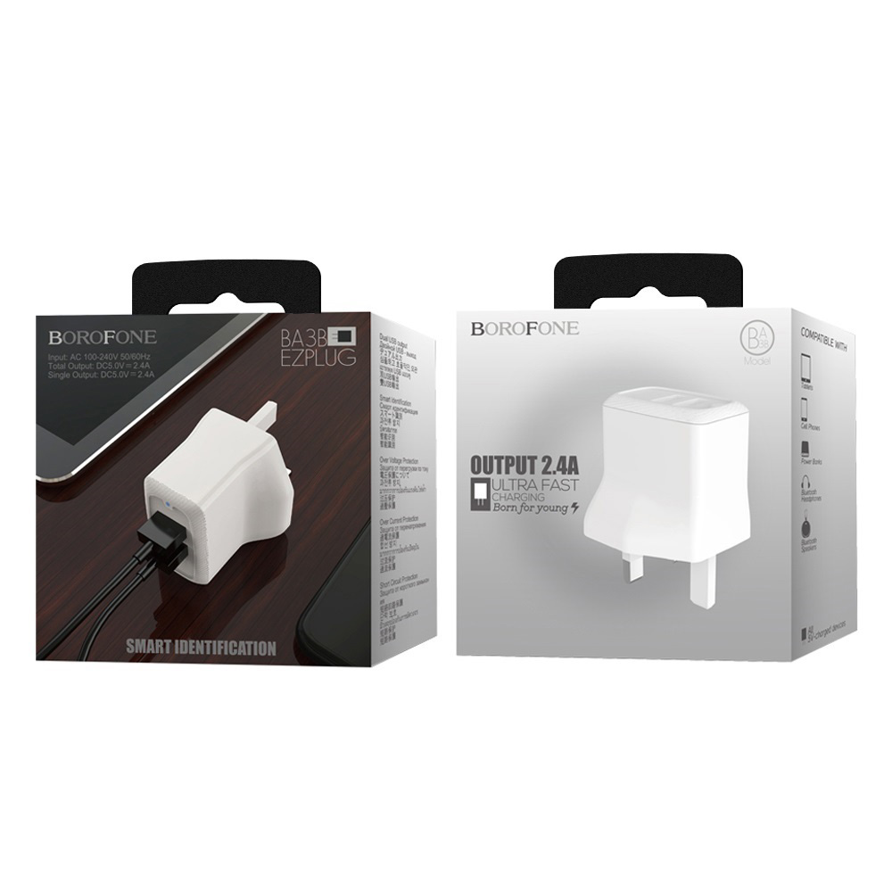 BOROFONE BA3B Ezplug, wall charger with dual USB port, UK plug, output current 2.4A