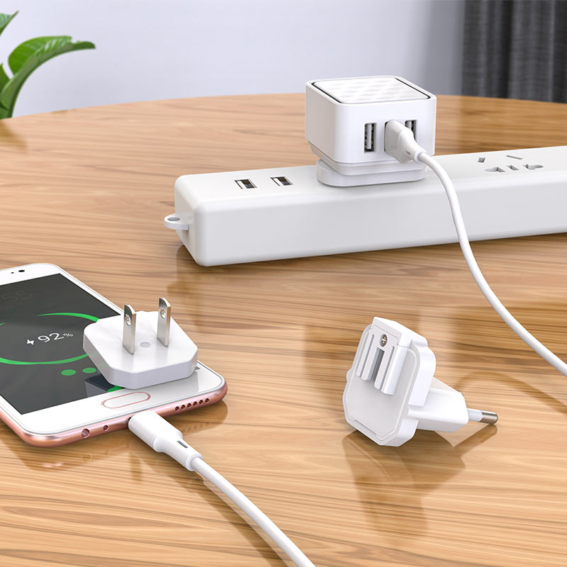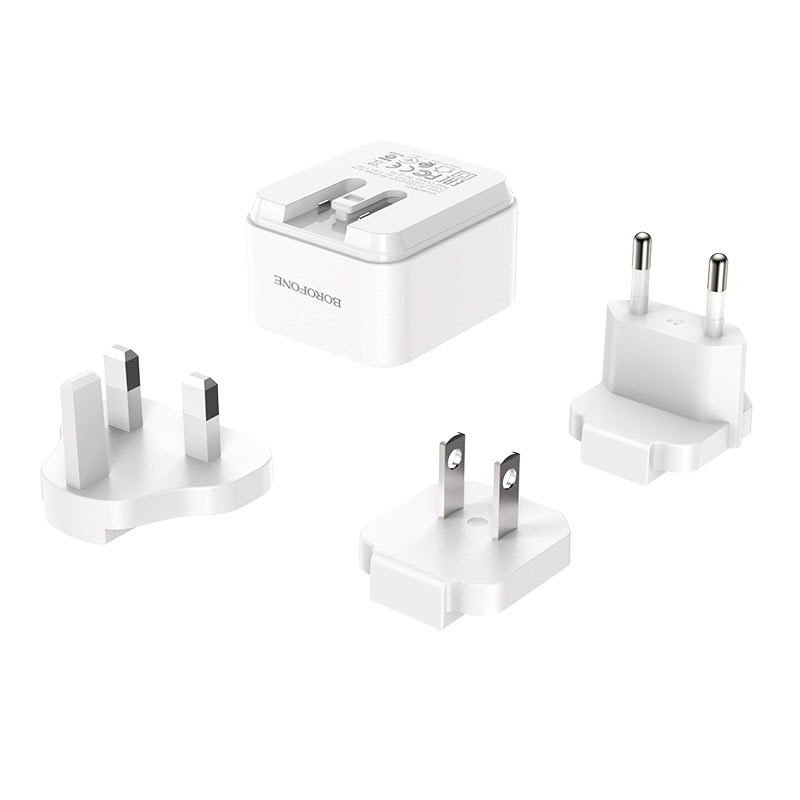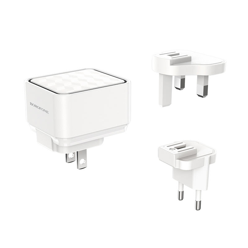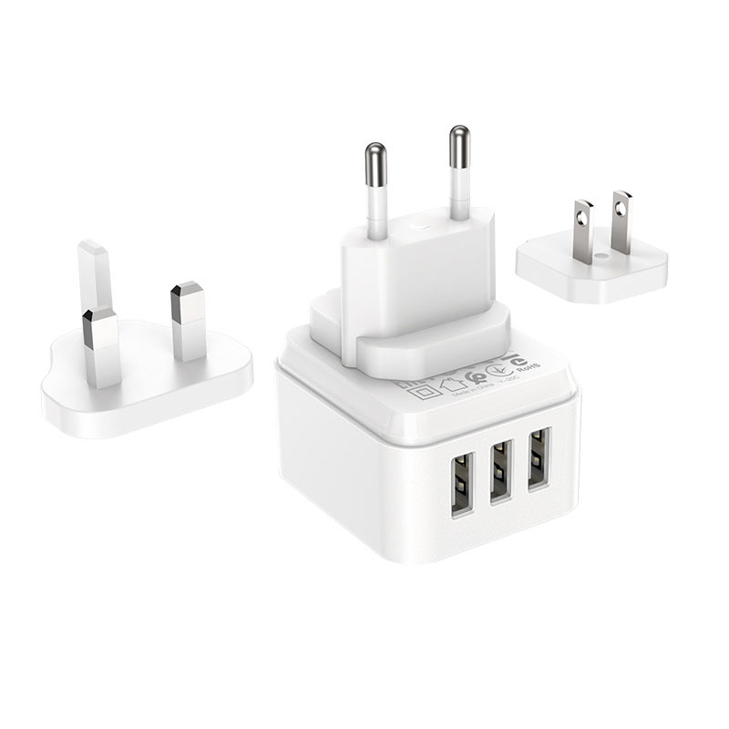 BOROFONE BA51 Easy removable pin wall charger, plug EU / US / UK, plugs can be removed and replaced, 3 USB output, power 12W
