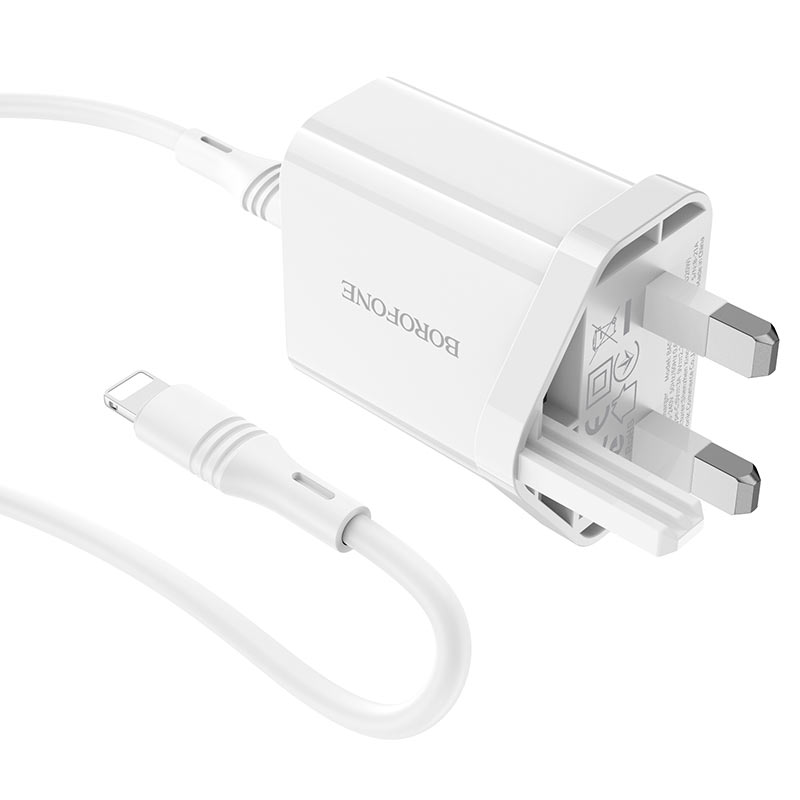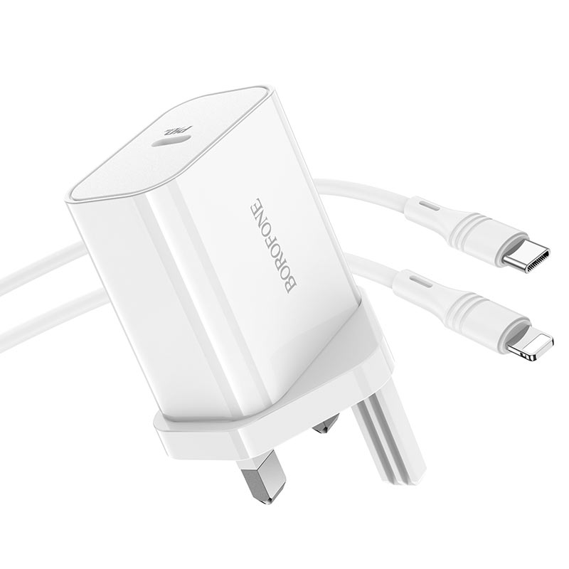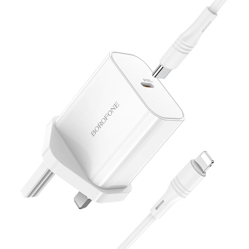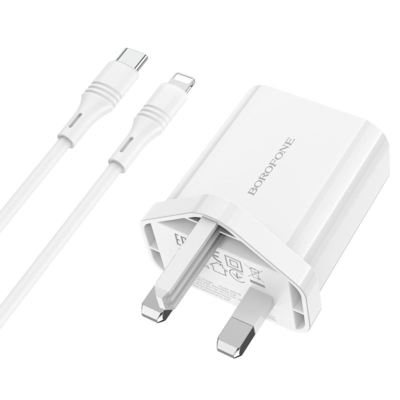 BOROFONE BA57B Easy speed, wall charger, USB-C PD 20W output, UK plug, set with cable for USB-C to Lightning PD