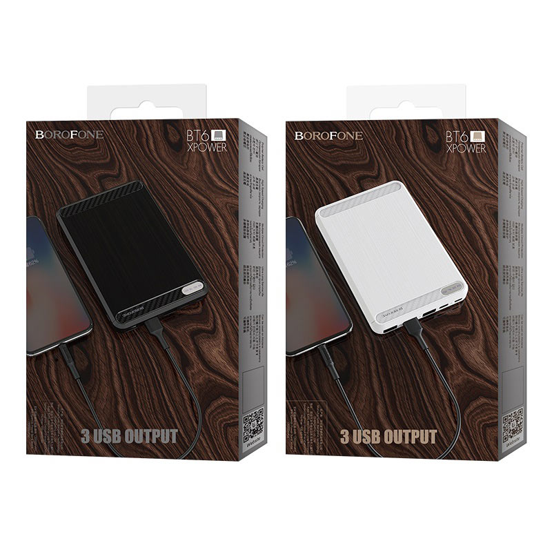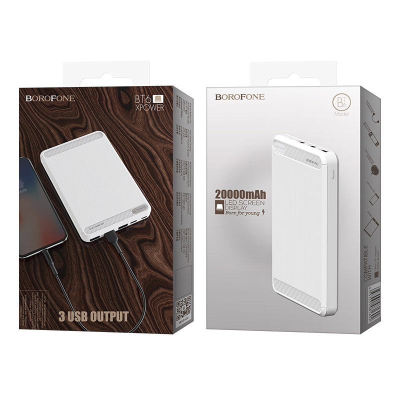 BOROFONE BT6 Xpower, mobile power bank, 20000mAh capacity, Micro-USB / USB-C input, triple USB 2A / USB-C 2A output, LED screen